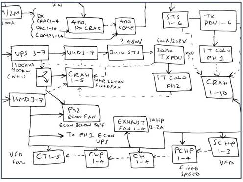 解鎖真正預測數(shù)據(jù)中心的成本和能源的能力,DCIM應該能夠提供對未來的預測,讓數(shù)據(jù)中心運營商知道數(shù)據(jù)中心不同的負載和溫度條件下的反應,以及跟蹤項目的主要設施的利用能力。這一個方法是通過性能模型體現(xiàn)的,其中包括在電力和冷卻鏈的主要機械和電氣基礎設施(見圖4)。該模型取代了以前繁重的手工構造的模型(見圖1)。