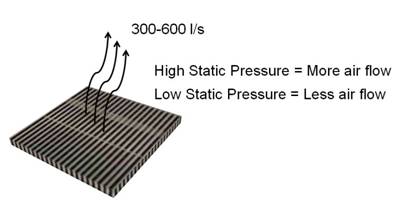 這個(gè)誤解是從地板格柵輸出的空氣來(lái)冷卻服務(wù)器。他們可能會(huì)在氣流控制策略的正確應(yīng)用這樣做,但在IT服務(wù)器從阻力最小的路徑吸入空氣。對(duì)于一個(gè)典型的地板格柵(600毫米的正方形)的氣流可在300升/秒至600升/秒之間變化。在一般情況下,在格柵背后的靜壓越大,其氣流更大,靜壓越小,氣流越小(見(jiàn)圖4)。在散熱方面,這種情況下每個(gè)格柵可以提到3到6千瓦冷卻能力,一般都低于300升/秒,可為冷卻服務(wù)器機(jī)柜提供足夠的壓力;任何超過(guò)600升/秒的冷卻能力可能只能采用旁路柜的方式。