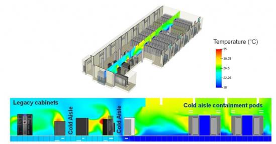 必須解決的第二個(gè)復(fù)雜性是溫度。在數(shù)據(jù)中心的溫度分布取決于幾個(gè)因素,如冷卻設(shè)備的配置,氣流,服務(wù)器和負(fù)載密度的空間配置。數(shù)據(jù)中心的業(yè)主在自己的數(shù)據(jù)大廳通常安裝冷通道遏制系統(tǒng)。這種方法通常宣稱節(jié)能或通過(guò)降低冷暖空氣混合,以增加工作溫度較高的可靠性。更多的往往不是這樣的安裝,盲目地影響數(shù)據(jù)大廳其他地方的冷卻能力的可用性,這對(duì)于數(shù)據(jù)中心擁有者可能會(huì)有一個(gè)表面的投資回報(bào)率(投資回報(bào)率)。圖6示出了這樣一個(gè)例子,其中該密封冷通道過(guò)冷至18℃,而遺留區(qū)域的設(shè)備接近24℃-26℃。在這種情況下,接近傳統(tǒng)設(shè)備的冷卻單元比冷通道密封的工作更加簡(jiǎn)單,從而在地板的空隙中觀察到的溫度差。