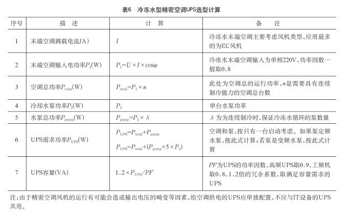 (2)冷凍水型精密空調(diào)UPS選型建議(見表6)