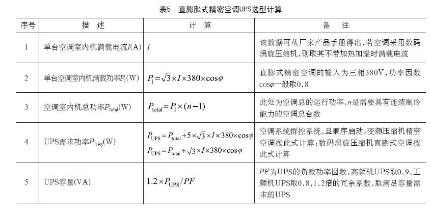 (1)直膨脹式精密空調(diào)UPS選型建議(見表5)
