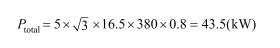 例如,假設(shè)在T1工況(溫帶氣候,環(huán)境溫度在-20~45℃),對(duì)于散熱量為38kW風(fēng)冷室外機(jī),其輸入制式為380~415Vac/3Ph/50或60Hz,滿載電流為2.5A,功率因數(shù)取0.8,則室外機(jī)功率為