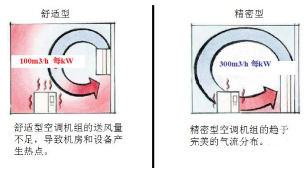 傳統(tǒng)的舒適性空調(diào)主要是針對(duì)于人員設(shè)計(jì),送風(fēng)量小,送風(fēng)焓差大,降溫和除濕同時(shí)進(jìn)行;而機(jī)房?jī)?nèi)顯熱量占全部熱量的90%以上;風(fēng)速低,機(jī)房冷卻不均勻;不能滿足計(jì)算機(jī)的凈化要求;不配備加濕系統(tǒng),難滿足可靠性要求。
