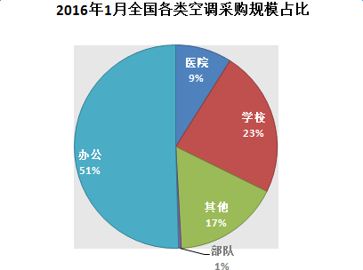 2016年1月全國各類空調(diào)采購規(guī)模占比