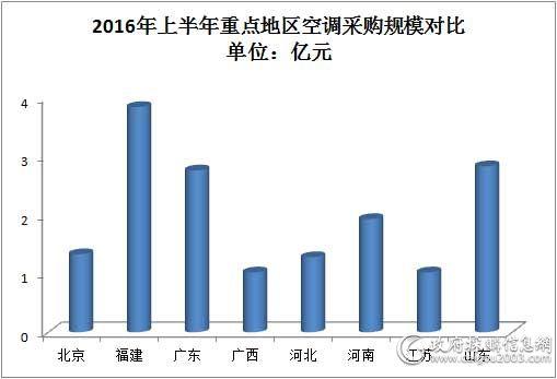 2016年上半年,我國各地空調(diào)公開招標(biāo)采購規(guī)模達25億元,其中福建采購規(guī)模居首位。